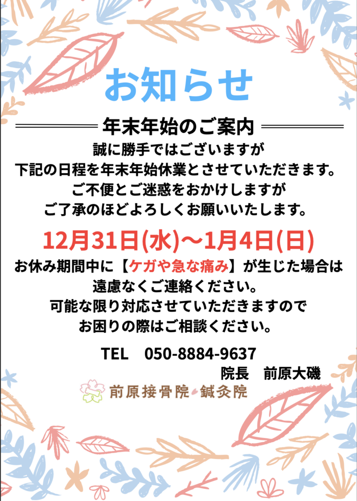 お知らせ|前原接骨院・鍼灸院